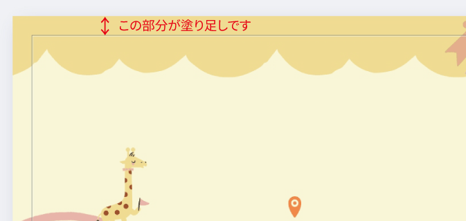 塗り足し不足の場合は、背景や画像などを塗り足し線まで拡大してください。